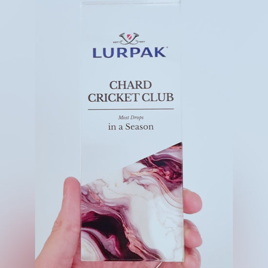 Made from 15mm thick crystal-clear acrylic, this award features your choice of vibrant marble-effect base and allows you to add your own logo or select one of our professional icons – all at no extra cost.