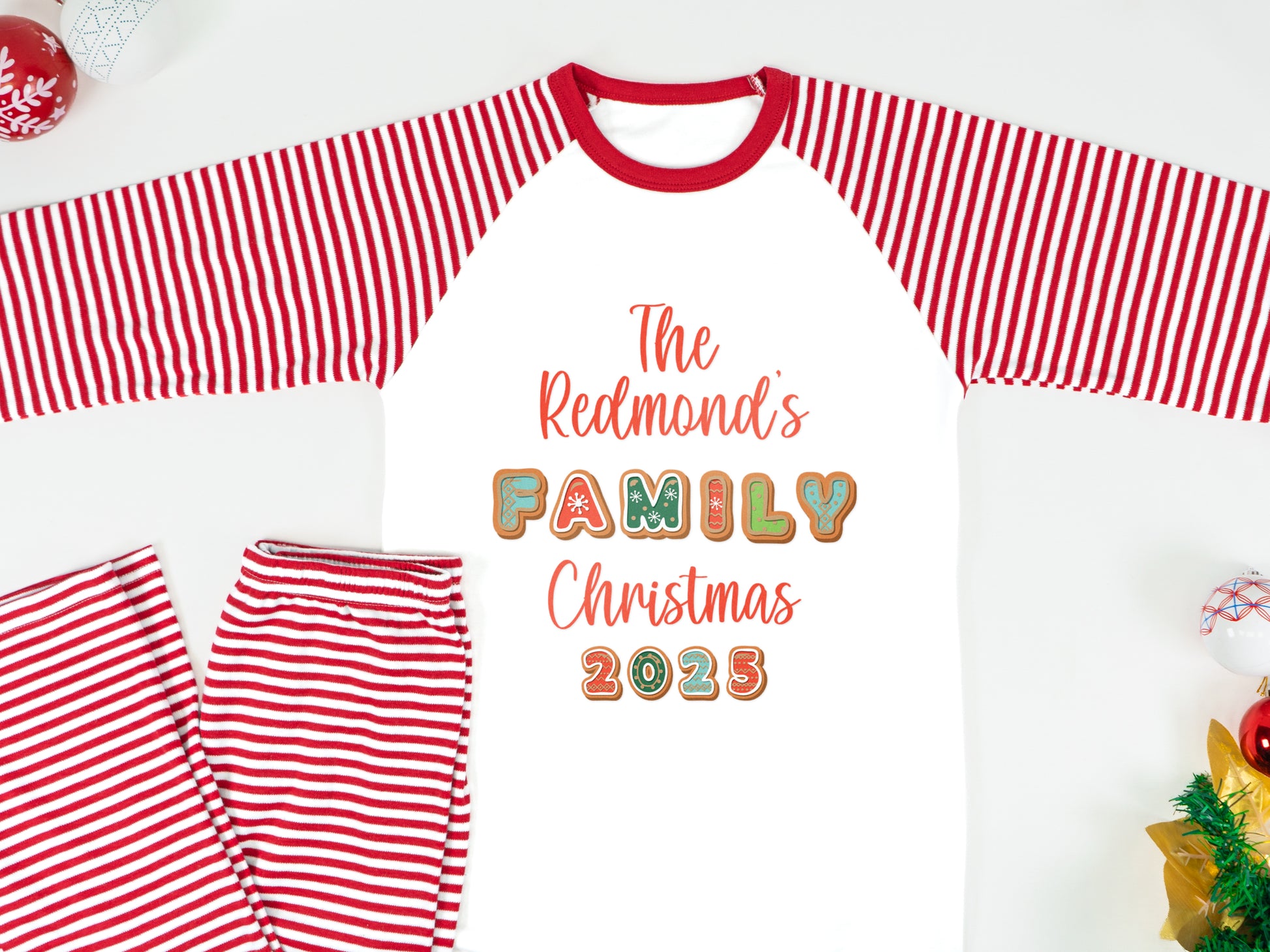 Personalised Matching Family Christmas Pyjamas – ‘Believe’ Candy Cane Design – PJs for Mum, Dad, Girls, Boys & Baby