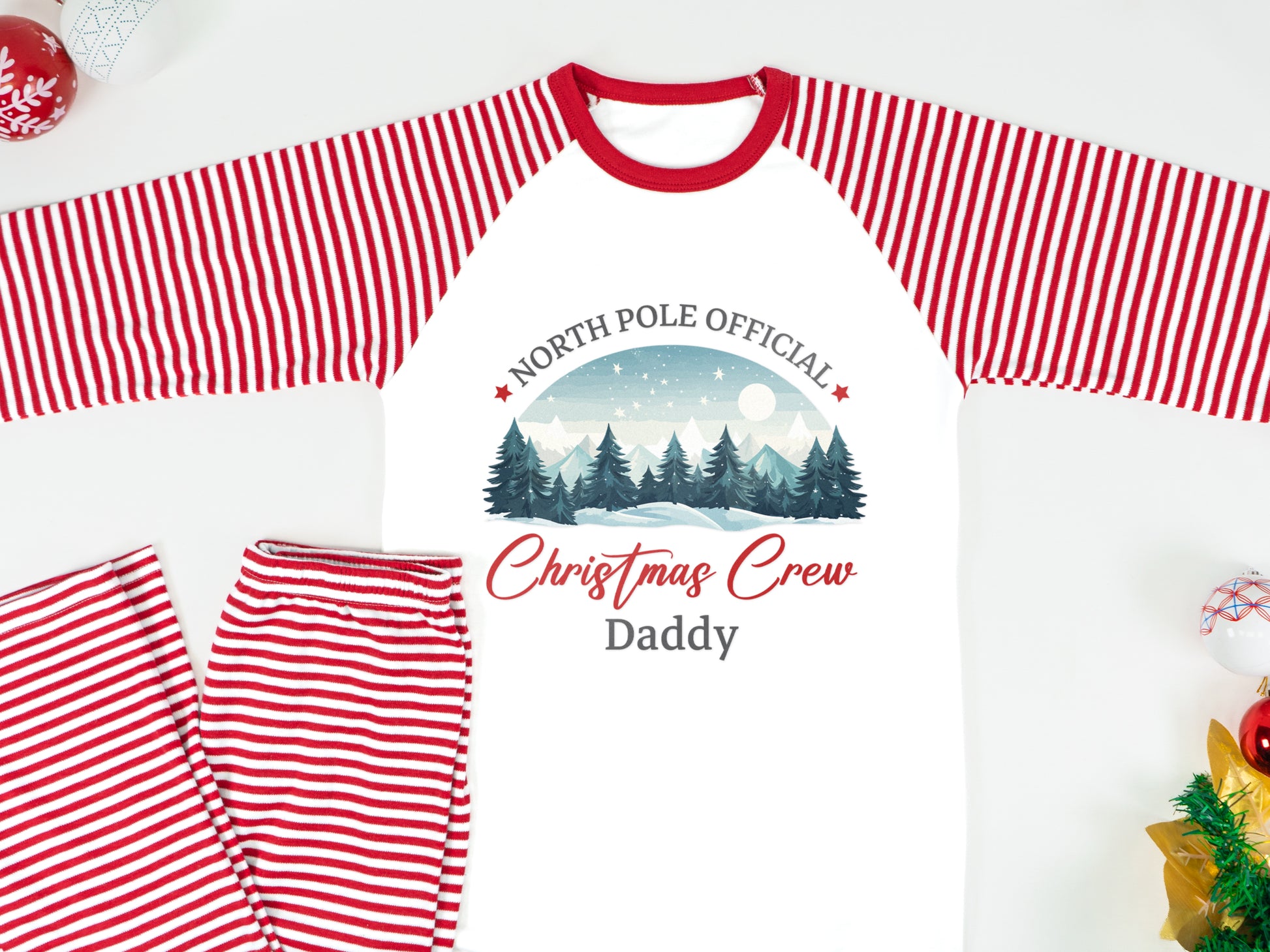 Personalised ‘North Pole Christmas Crew’ Family Pyjamas – Matching Candy Cane Stripe PJs for Mum, Dad, Kids & Baby