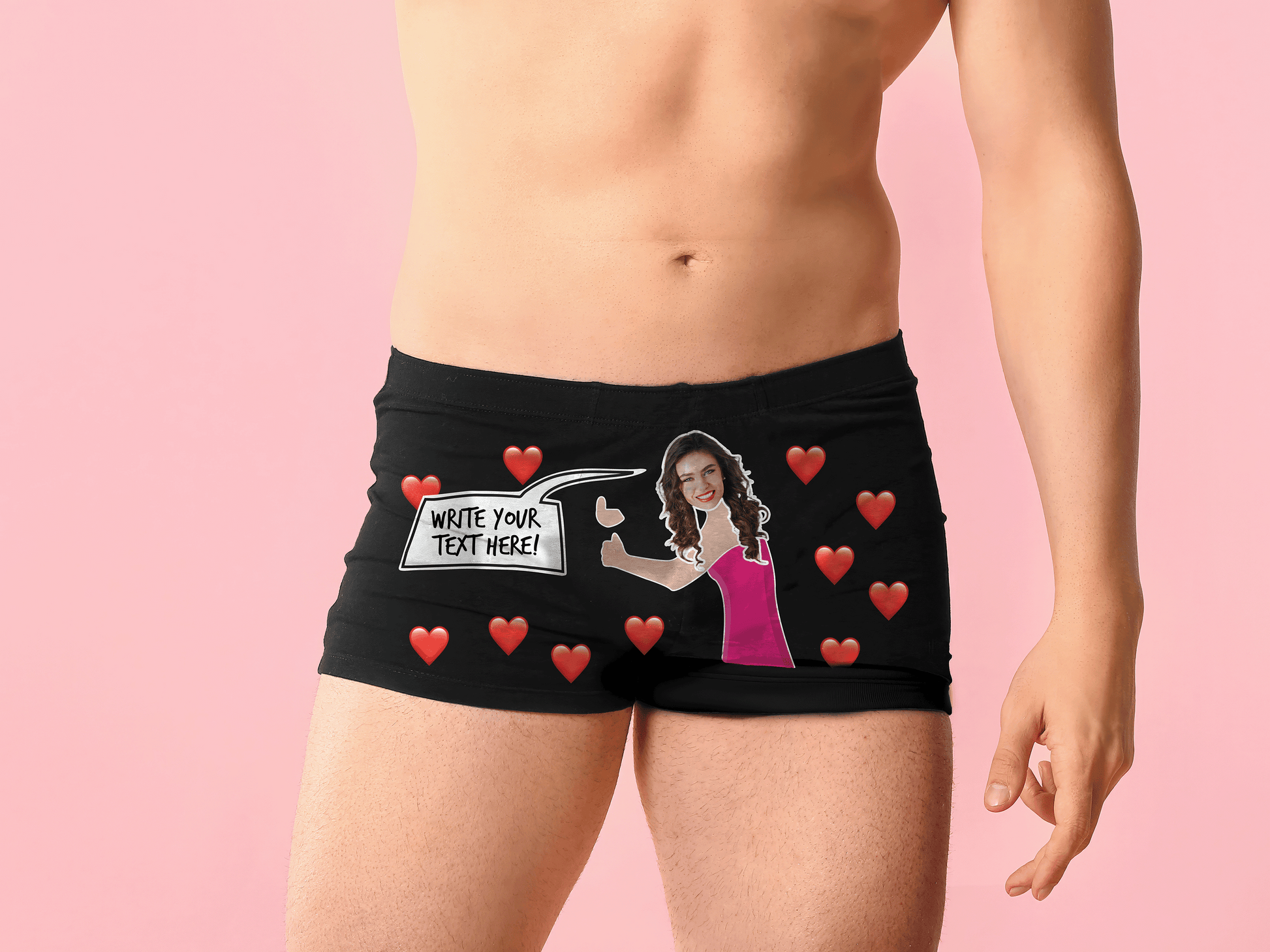 Custom Photo Boxer Shorts - Funny Valentine’s Day Gift for Him | Personalised Text & Photo