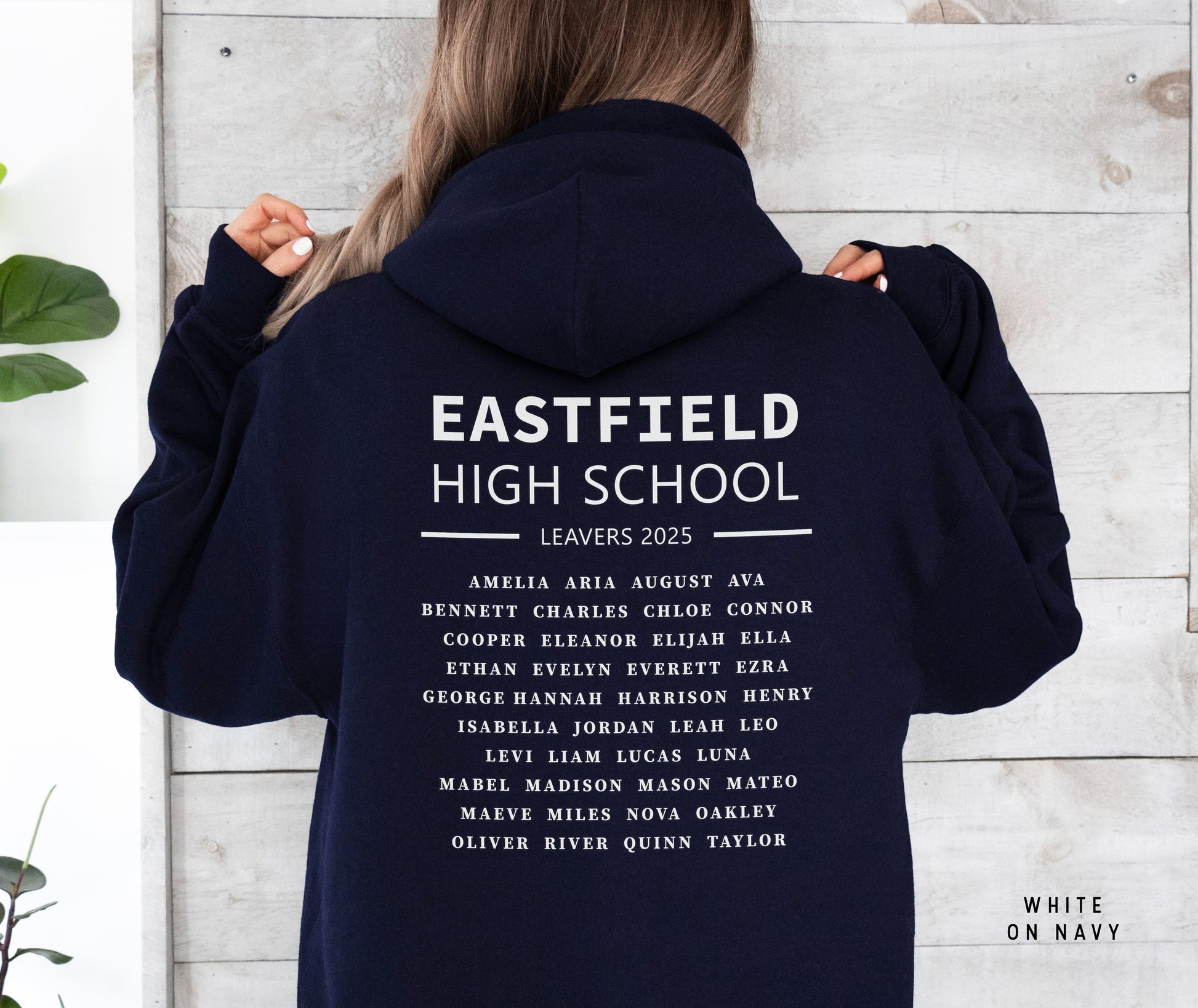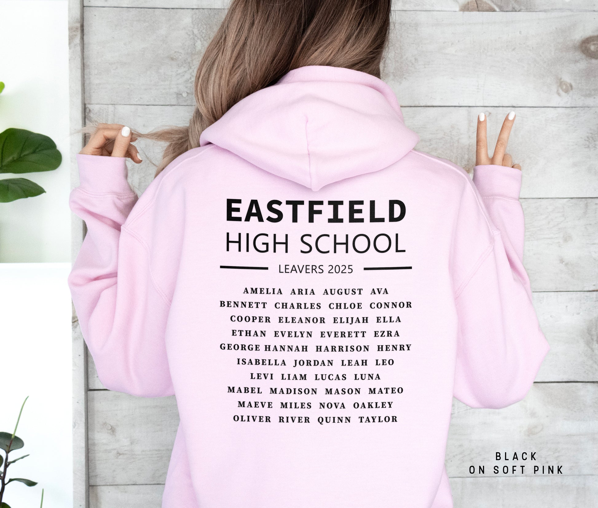 Discover our exclusive School Leaver Hoodies, the perfect keepsake for students moving on from their school. Our hoodies are crafted from high-quality, organic ring-spun cotton that remains soft and resistant to bobbling or becoming coarse or bitty, even after machine washing. Utilising the latest in garment printing technology, we assure the highest resolution print directly on the fabric that won't fade or peel—setting us apart by not resorting to lower quality vinyl or stickers.